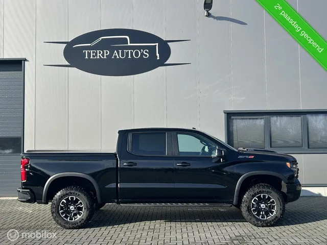 2e Paasdag geopend van 11.00 t/m 16.00. Nieuwe Chevrolet Silverado ZR2 6.2 V8 (de Raptor van Chevrolet). Bomvolle auto uitgevoerd met alle mogelijke opties! Prijs is rijklaar incl trekhaak en Klep over de laadbak. Lpginbouw mogelijk tegen meerprijs. Inruil/Financiering mogelijk. Chevrolet Silverado ZR2 6.2 V8 Nieuw 2024 BPM VRIJ. Merk: Chevrolet USA; Model: Silverado ZR2; Tellerstand: 111 KM; Carrosserievorm: Pick-up; Aantal deuren: 4; Brandstofsoort: Benzine; Bouwjaar: 2024; Transmissie: Automaat; Kleur: zwart; Bekleding: Leder; Kleur interieur: zwart; Motorinhoud: 6200 cc; Aantal cilinders: 8; Vermogen: 313 kW / 426pk; Max. trekgewicht: 3500 kg; Aantal zitplaatsen: 5; BTW/Marge: BTW aftrekbaar, de prijs is exclusief BTW; Aantal sleutels: 2. Comfort. Cruise control; Regensensor. Exterieur. 360gr camera; Buitenspiegels elektrisch verstelbaar; Buitenspiegels verwarmbaar; Centrale vergrendeling; Getint glas; Glazen schuifdak; Metaalkleur; Park Distance Control; Sportvelgen; Trekhaak. ...