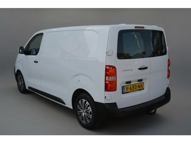 Nette Citroën Jumpy automaat van bouwjaar 2018 met weinig kilometers. O.a. voorzien van; elektrische ramen, elektrisch verstel & inklapbare buitenspiegels, airconditioning, bluetoothscherm, schakelflippers, centrale deurvergrendeling, mistlampen voor & achter en betimmerde laadruimte. APK is geldig tot 12-2026. Vanzelfsprekend worden reservesleutel, boekjes en nationale auto-pas meegeleverd. Bus is voorzien van nieuwe remmen. *Let op! Prijs is ex.BTW.*. Carrosserievorm: Bestelauto; Voorwielaandrijving; 70 kW; 4 cilinders; 1.560cc; Gewicht: 1.514kg; Laadvermogen: 1.126kg; GVW: 2.640kg; Wielbasis: 327cm; Topsnelheid: 145km/u; Interieur: Donkergrijs, Stof; 5,4 l/100km; 5,5 l/100km; 5,3 l/100km; 139 g/km CO₂; Euro 6; APK: tot dec. 2026; 2 sleutels (2 handzenders); Wegenbelasting: € 139p/kwrt; vanaf € 236 p/m (informeer naar de mogelijkheden en voorwaarden); V-683-NN