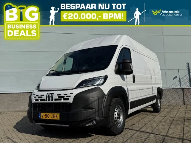 Deze krachtige en praktische bedrijfswagen is uitgerust met een 140 pk motor, ideaal voor zowel zwaar transport als lange ritten. Met een trekhaak, extra sleutel, en verzwaarde vering biedt de Ducato optimale functionaliteit en betrouwbaarheid. De cruise control zorgt voor extra comfort tijdens lange ritten. Perfect voor ondernemers die efficiëntie en kracht zoeken. Neem contact op voor meer informatie of om een proefrit te plannen! Carrosserievorm: Bestelbus; 6 versn., Handgeschakeld; Nieuw; Constructie: 2024-10; Modeljaar: 2024; 103 kW; 4 cilinders; 2.184cc; Gewicht: 2.090kg; Laadvermogen: 1.410kg; GVW: 3.500kg; Max. trekgewicht: 3.000kg; LxBxH: 613x205x253cm; Wielbasis: 404cm; Topsnelheid: 153km/u; Interieur: zwart, Stof; 3 zitplaatsen; 222 g/km CO₂; Euro 6; Dealer onderhouden (onderhoudsboekjes aanwezig); APK bij aflevering; Wegenbelasting: € 192p/kwrt; vanaf € 585 p/m (informeer naar de mogelijkheden en voorwaarden); #68105
