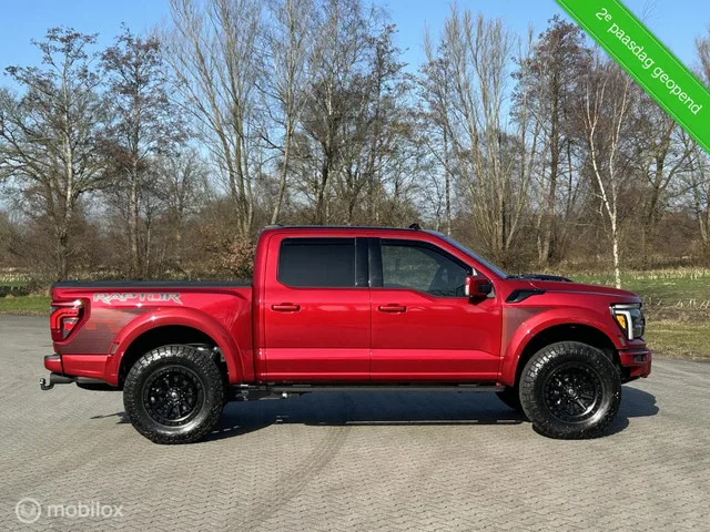 2e Paasdag geopend van 11.00 t/m 16.00. Splinternieuwe Ford Raptor R Voorzien van alle mogelijke opties in de prachtige kleur Rapid Red. Fender Flares en bumpers hebben we in kleur mee laten spuiten, Andere kunststof delen hebben we in zijdeglans zwart laten spuiten. Tevens hebben we de Raptor voorzien van een levelingskit en 20 inch Fuel Wielen met 37inch Nitto Ridge Grapplers en wheel liners. Trekhaak 3500kg. BackFlip. Inruil/Financiering mogelijk. Ford F150 Raptor R 5.2 V8 730pk 2024 Vol Opties! BPM VRIJ. Kenteken: V-06-NPN; Merk: Ford USA; Model: F150; APK tot: 01-10-2028; Tellerstand: 121 KM; Carrosserievorm: Pick-up; Aantal deuren: 4; Brandstofsoort: Benzine; Bouwjaar: 2024; Transmissie: Automaat; Kleur: rood; Kleurnaam: Rapid Red; Bekleding: Leder; Kleur interieur: zwart; Motorinhoud: 5162 cc; Aantal cilinders: 8; Vermogen: 537 kW / 731pk; Ledig gewicht: 2716 kg; Max. trekgewicht: 3500 kg; Aantal zitplaatsen: 5; BTW/Marge: BTW aftrekbaar, de prijs is exclusief BTW; Lengte:...