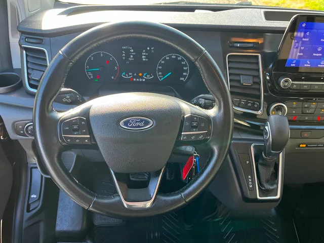 Ford Transit Custom L2H1. Limited uitvoering. 170 pk Automaat Euro 6. 2100kg trekgewicht. bouwjaar 2020. 83.000 km. Meer informatie: Carrosserievorm: Bestelbus; Voorwielaandrijving; Vermogen: 125 kW (170 PK); Aantal cilinders: 4; Motorinhoud: 1.995 cc; Ledig gewicht: 1.963 kg; Laadvermogen: 1.437 kg; GVW: 3.400 kg; Max. trekgewicht: 2.100 kg (ongeremd 750 kg); Wielbasis: 330 cm; Interieur: zwart, Stof; 3 zitplaatsen; Gemiddeld brandstofverbruik: 6,6 l/100km (1 op 15,2); CO₂-uitstoot: 172 g/km; Emissieklasse: Euro 6; Dealer onderhouden (onderhoudsboekjes aanwezig); APK gekeurd tot mrt. 2027; 2 sleutels (2 handzenders); Motorrijtuigenbelasting: € 183 per kwartaal; vanaf € 355 p/m (financial lease, 72 maanden); informeer naar de mogelijkheden en voorwaarden; Referentienummer: VGX-16-D