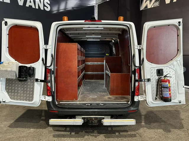 164pk sterke Sprinter L2H1 Automaat Euro6 met handige inrichting en 3500kg trekhaak. Geheel dealer onderhouden met airconditioning, camera, Apple Carplay, Android Auto, cruisecontrol, parkeersensoren en bluetooth telefoonvoorbereiding. Carrosserievorm: Bestelbus; 6 versn., Handgeschakeld; Modeljaar: 2018; Achterwielaandrijving; 121 kW; 380 Nm; 4 cilinders; 2.143cc; Gewicht: 2.104kg; Laadvermogen: 1.396kg; GVW: 3.500kg; Max. trekgewicht: 3.500kg; L2H1; LxBxH: 593x202x266cm; Wielbasis: 366cm; 71l tank; Afmetingen laadruimte: 327x179x179cm; Interieur: zwart, Stof; 2 zitplaatsen; 7,4 l/100km; 7,3 l/100km; 7,4 l/100km; 193 g/km CO₂; Euro 6; Dealer onderhouden (onderhoudsboekjes aanwezig); Aantal eigenaren: 2; APK: tot jul. 2026; 1 sleutel (1 handzender); Wegenbelasting: € 192p/kwrt; vanaf € 371 p/m (informeer naar de mogelijkheden en voorwaarden); Optioneel afleverpakket: Garantiepakket 1 (€ 695 ex BTW); VBD-67-T