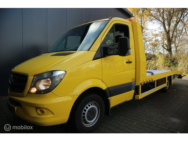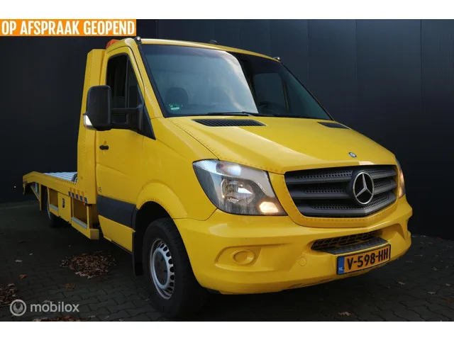 Mercedes Sprinter 316 2.2 CDI AUTOMAAT/OPRIJWAGEN/TIJHOF. Kenteken: V-598-HH; Merk: Mercedes; Model: Sprinter bestel; APK tot: 22-07-2026; Tellerstand: 318255 KM; Carrosserievorm: Chassis-cabine; Aantal deuren: 2; Brandstofsoort: Diesel; Bouwjaar: 2014; Transmissie: Automaat; Motorinhoud: 2143 cc; Aantal cilinders: 4; Vermogen: 120 kW / 163pk; Ledig gewicht: 2160 kg; Aantal zitplaatsen: 3; BTW/Marge: BTW aftrekbaar, de prijs is exclusief BTW; Breedte: 210 cm; Aantal sleutels: 2; Emissieklasse: Euro 5; Wielbasis: 433 mm. Comfort. Cruise control; Regensensor. Exterieur. Centrale vergrendeling met afstandsbediening; TIJHOF LAADBAK; Trekhaak. Interieur. 2 zitplaatsen rechtsvoor; Airco; Armsteun voor; Bestuurdersstoel in hoogte verstelbaar; Elektrische ramen voor; Passagiersstoel in hoogte verstelbaar; Stuur verstelbaar; Tachograaf. Overige. Anti Blokkeer Systeem; Anti doorSlip Regeling; Bestuurdersairbag; Bluetooth; Elektronisch Stabiliteits Programma; Elektronische remkrachtverdeling...