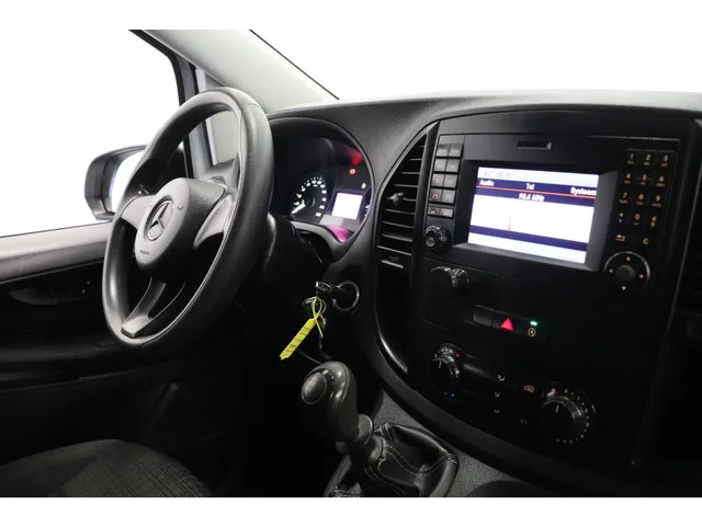 Mercedes-Benz Vito 110 CDI XL van bouwjaar 2020. EURO 6, Milieuzone Proof! Onder andere voorzien van Airco, Achteruitrijcamera, Kastinbouw en uitklapbare oprijplaat. Daarnaast is deze Vito voorzien van een onderhoudshistorie. Carrosserievorm: Bestelauto; 6 versn., Handgeschakeld; Modeljaar: 2019; Voorwielaandrijving; 75 kW; 270 Nm; 4 cilinders; 1.750cc; Gewicht: 1.815kg; Laadvermogen: 686kg; GVW: 2.501kg; L3H1; LxBxH: 537x193x199cm; Wielbasis: 343cm; 57l tank; Interieur: zwart, Stof; 3 zitplaatsen; 6,6 l/100km; 7,8 l/100km; 5,9 l/100km; 200 g/km CO₂; Euro 6; Dealer onderhouden (onderhoudsboekjes aanwezig); Aantal eigenaren: 4; APK: tot jul. 2026; 2 sleutels (2 handzenders); Wegenbelasting: € 165p/kwrt; vanaf € 253 p/m (informeer naar de mogelijkheden en voorwaarden); VFV-03-N