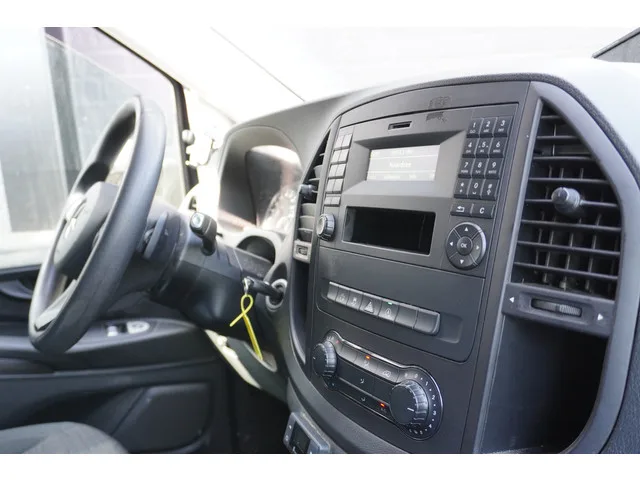 Mercedes-Benz Vito 114 CDI Lang Automaat van het bouwjaar 2018. EURO 6, milieuzone proof! Onder andere voorzien van Airco, Cruise control, Carkit en Achteruitrijcamera met parkeersensoren. Daarnaast is deze Vito voorzien van een onderhoudshistorie. Carrosserievorm: Bestelauto; 7 versn., Automaat; Modeljaar: 2016; Achterwielaandrijving; 100 kW; 330 Nm; 4 cilinders; 2.143cc; Gewicht: 1.911kg; Laadvermogen: 889kg; GVW: 2.800kg; L2H1; LxBxH: 514x193x198cm; Wielbasis: 320cm; 72l tank; 0-100 km/h: 12,8s; Topsnelheid: 184km/u; Interieur: zwart, Stof; 3 zitplaatsen; 6 l/100km; 6,7 l/100km; 5,6 l/100km; 158 g/km CO₂; Euro 6; Onderhoudsboekjes aanwezig; Aantal eigenaren: 2; 1 sleutel (1 handzender); Wegenbelasting: € 174p/kwrt; vanaf € 287 p/m (informeer naar de mogelijkheden en voorwaarden); V-381-RR