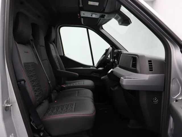 Bestuurdersstoel in hoogte verstelbaar met lendensteun en armsteun, Bestuurdersstoel met handmatige lendensteunverstelling, Cabineverlichting met twee afzonderlijke lampjes, Chromen afwerking rond de ventilatieroosters, Dashboardafwerking in zwart met horizontale grijze baan, Dashboardlade, LED-interieurverlichting met 2 afzonderlijke lampjes, LED-verlichting in de laadruimte, Mechanische parkeerrem, Meerdere afgesloten opbergruimtes in bovenzijde dashboard, Multifunctionele passagiersbank met papierhouder, Opbergvak boven dashboard, Open handschoenenkastje, Premium stoffen bekleding, Scheidingswand met bekleding, Sjorogen in laadruimte (12 in L2, 14 in L3), Softtouch kunststof stuurwiel, Vaste passagiersbank met 2 zitplaatsen, opklapbare middenrugleuning en opbergruimte, Verwarmbare passagiersstoelen, Verwarmde voorstoel, Volledig gesloten tussenschot met geluidsisolatie