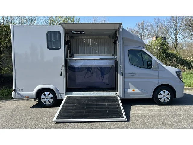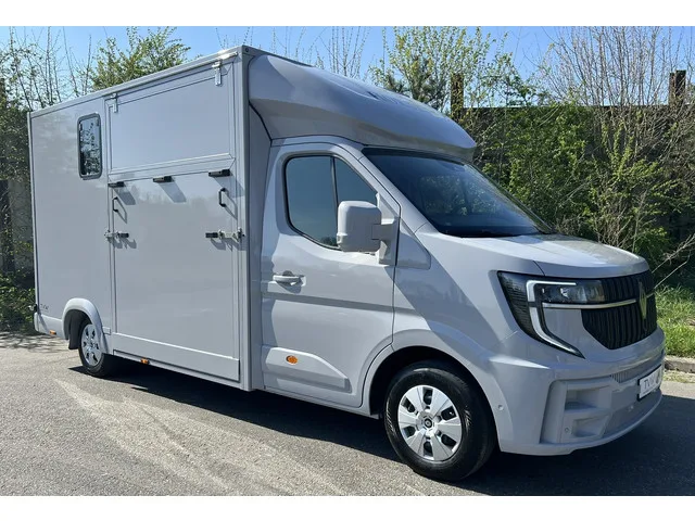 Nieuwste model Renault Master paardenwagen. Paardengedeelte met hengsten uitvoering voorzien van ventilator, dakraam, zijramen (half opengaand) en verlichting wit/blauw. Er hangt een camera in het paardengedeelte om de paarden vanuit de cabine goed in de gaten te kunnen houden tijdens het rijden. Vloer is voorzien van rubberen gietvloer. Ruime zadelkamer. Links voorzien van 2 zadelsteunen, 2 hoofdstelsteunen en 2 opbergplanken. Rechts voorzien van een bankje en 1 opbergplank. Zadelkamer is te betreden via een stalen opstapje. Extra opties mogelijk tegen meerprijs. Zoals: Licht metalen velgen. Lederen bekleding. Lederen kussenpakket. Trapkussens (kick pads). Voerbakken. Watervoorziening. Temperatuurmeter. Kledingstang. Spiegel. Andere wensen laat het ons weten! Prijs is exc. BTW. BPM vrij! Carrosserievorm: Paardenvervoer; 6 versn., Handgeschakeld; Nieuw; Modeljaar: 2024; Voorwielaandrijving; 125 kW; 380 Nm; 4 cilinders; 1.998cc; Gewicht: 2.100kg; Laadvermogen: 1.400kg; GVW: 3.500kg;...