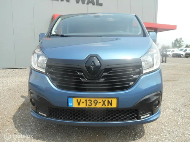 Renault Trafic bestel 1.6 dCi T29 L2H1 DC/CLIMATECONTROL/CRUISECONTROL/NAVIGATIE. Kenteken: V-139-XN; Merk: Renault; Model: Trafic bestel; APK tot: 19-09-2026; Tellerstand: 201830 KM; Carrosserievorm: Bestel; Aantal deuren: 5; Brandstofsoort: Diesel; Bouwjaar: 2019; Transmissie: Handgeschakeld 6 BAK; Kleur: blauw Metallic; Motorinhoud: 1598 cc; Aantal cilinders: 4; Motorcode: R9M H4; Vermogen: 89 kW / 121pk; Ledig gewicht: 1825 kg; Max. trekgewicht: 2000 kg; Aantal zitplaatsen: 5; Verbruik: 6.7 l/100 km; BTW/Marge: BTW aftrekbaar, de prijs is exclusief BTW; Lengte: 540 cm; Breedte: 196 cm; Laadruimte hoogte: 139 cm; Aantal sleutels: 2; Motorrijtuigenbelasting: € 166 per kwartaal; Emissieklasse: Euro 6. Comfort. Boordcomputer; Cruise control. Exterieur. Buitenspiegels elektrisch verstel- en verwarmbaar; Buitenspiegels in carrosseriekleur; Bumpers in carrosseriekleur; Centrale vergrendeling met afstandsbediening; Lichtmetalen velgen 17"; Metaalkleur; Park Distance Control...