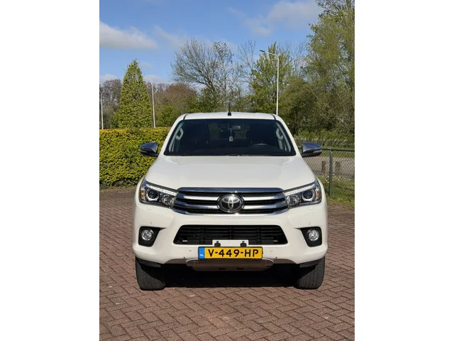 Unieke - en supernette Toyota HiLux . Dit is de meest luxe uitvoering die er is . Wat deze auto onderscheidt van de rest : -Parelmoer witte kleur. -Zwart leren interieur. -Automaat. -Keyless entry. -Tonneau cover met RVS rollbar. -Climatronic. -Stoelverwarming. -Navigatie met achteruitrij camera. -Parkeersensoren. De auto mag 800 Kilo laden en 3200 kilo trekken . Origineel Nederlands geleverd , en aantoonbaar perfect onderhouden . Verkeert zowel van binnen , als van buiten in een uitzonderlijk nette staat . Carrosserievorm: Pick-Up (grijs kenteken); 6 versn., Automaat; Modeljaar: 2016; 110 kW; 400 Nm; 4 cilinders; 2.393cc; Gewicht: 2.405kg; Laadvermogen: 805kg; GVW: 3.210kg; Wielbasis: 308cm; 80l tank; 0-100 km/h: 12,8s; Topsnelheid: 170km/u; 2 zitplaatsen; 7,2 l/100km; 8,5 l/100km; 6,5 l/100km; 189 g/km CO₂; Euro 6; Aantal eigenaren: 2; APK bij aflevering; Algemene staat: goed; Wegenbelasting: € 220p/kwrt; vanaf € 406 p/m (informeer naar de mogelijkheden en voorwaarden); V-449-HP