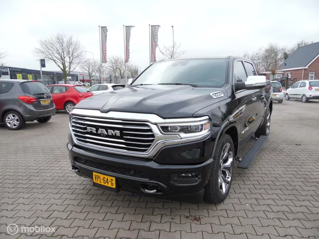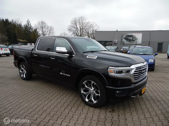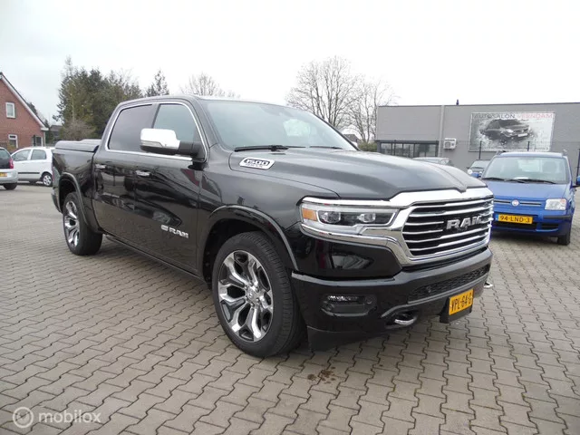 Dodge Ram 1500 4X4 5.7 V8 4x4 Crew Cab Long Horn Full Options. Kenteken: VPL-64-G; Merk: Dodge; Model: Ram 1500 4X4; APK tot: 29-09-2026; Tellerstand: 59650 KM; Carrosserievorm: Pick-up; Aantal deuren: 4; Brandstofsoort: Benzine; Bouwjaar: 2022; Transmissie: Automaat; Kleur: zwart Metallic; Bekleding: Leder; Kleur interieur: bruin; Motorinhoud: 5654 cc; Aantal cilinders: 8; Vermogen: 295 kW / 402pk; Ledig gewicht: 2718 kg; Max. trekgewicht: 3500 kg; Aantal zitplaatsen: 5; BTW/Marge: BTW aftrekbaar, de prijs is exclusief BTW; Lengte: 592 cm; Breedte: 208 cm; Aantal sleutels: 2; Onderhoudshistorie aanwezig: Ja; Motorrijtuigenbelasting: € 249 per kwartaal; Emissieklasse: Euro 6. Pakket: Advanced Safety Pack. Bots waarschuwing systeem; Cruise control adaptief met Stop&Go; Grootlichtassistent; Parkeer assistent; Rijstrooksensor met correctie; Rondomzicht camera. Comfort. Cruise control; Regensensor. Exterieur. Buitenspiegel rechts; Buitenspiegels elektrisch inklapbaar; Buitenspiegels...
