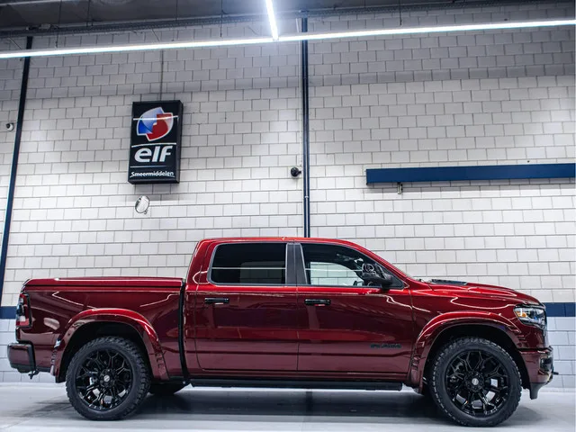 Nu te koop bij RAM dealer V.D. Lans Auto's: deze splinternieuwe Modeljaar 2024 Dodge RAM Limited Night Package, met de perfecte uitstraling en vol in de opties. De getoonde prijs is incl. LPG, deksel en een trekhaak. De overige accessoires zijn tegen meerprijs leverbaar; de totaalprijs van deze unieke Ram is rijklaar 99.950,00 Ex .b.t.w. Deze Dodge Ram Limited Night uitgevoerd in de kleur delmonico red hebben wij helemaal omgetoverd tot een custom beuker! De flares, wielen en striping zijn allemaal later op de auto gemonteerd en zijn dus ook tegen meerprijs leverbaar. **BPM-vrij**. De auto is uitgerust met de volgende optiepakketten: ASH - Night Package. ANT - Bed Utility Group. A69 - Limited Lvl 1 Equipmentgroup. GWJ - Dual Pane Panoramic Sunroof (Panoramadak). MR7 - Power Deployable Running Boards (Elektrische Treeplanken). MWK - Multifunctionele Tailgate. SER - 4 Corner Airsuspension. UJX - 12" Uconnect Display. ADG - Head up Display. ALP - Advanced Safety Group. De getoonde...