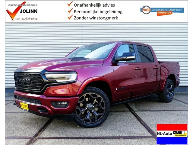 Automakelaar Jolink is vaak onderweg ivm aan- en verkoop begeleidingen. Om u de gewenste aandacht te kunnen geven en om teleurstellingen te voorkomen, werkt Automakelaar Jolink uitsluitend op afspraak. Woensdag en zondag gesloten. Zeer exclusieve Dodge Ram Crew Cab 5.7i V8 Hemi 4x4 Limited Night Edition in nieuwstaat! Deze RAM is een ware eyecatcher en een absolute liefhebbersauto. Met zijn krachtige 5.7i V8 Hemi motor en Limited Night Edition uitvoering is dit een unieke verschijning op de weg. De auto is origineel Nederlands geleverd en heeft slechts één eigenaar gehad. Met een kilometerstand van slechts 49.680 en 100% dealer onderhoud, verkeert deze auto nog in topconditie! De Dodge is voorzien van een stoere rode metallic kleur, wat perfect past bij het krachtige karakter van deze auto. Met zijn 8-traps automatische transmissie en 4x4 aandrijving is de RAM Crew Cab een genot om in te rijden, zowel op de snelweg als off-road. Ook het interieur van de auto is van alle gemakken...