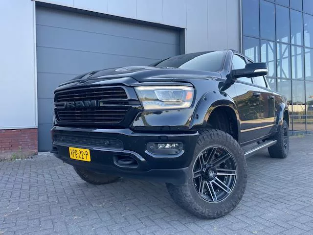 Wij krijgen weer een verhoogde Ram binnen met groot 12inch scherm uit 2022 afkomstig van de eerste eigenaar/liefhebber... Ram 1500 Black Ops Edition, 6-inch Rough Country verhoogd met Rough Country spatbord verbreders en speciale 35inch Mud banden, unieke verschijning!!!! Zwart metallic met zwart lederen interieur, 400pk sterke 5.7V8 HEMI en 8-traps automaat, vierwiel aangedreven. Grote Crew Cab cabine met lederen stuurwiel met bediening en Groot 12inch scherm Alpine radio/cd met apple CarPlay-navigatie en achteruitrij camera, elektrisch bedienbare ramen/spiegels en uitgebreide boordcomputer. Black Ops Sport uitvoering met 22inch zwarte velgen, sporthood, zwarte emblemen en zwarte hemel. 3500kg trekhaak, 200Liter lpg in de laadbak, parkeersensoren voor en achter, led verlichting en dubbel uitlaatsysteem. Zakelijk zeer interessant rijden en Financial lease mogelijk!!! Prijs excl. btw Bezichtiging op afspraak ivm levering nieuwe Ram, direct beschikbaar! Carrosserievorm: Bestelauto; 8...