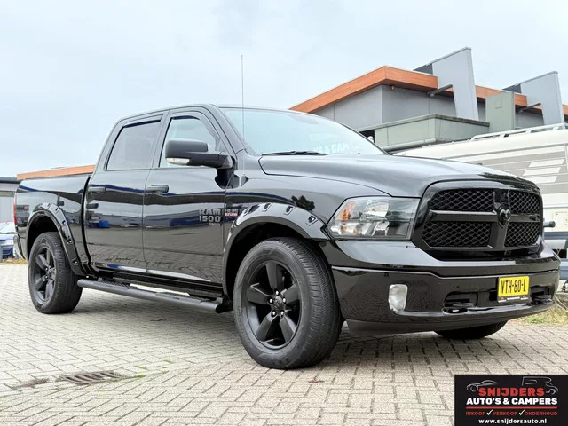 Deze auto is in nieuwstaat. Dodge Ram 1500 5.7 V8 Crew Cab MARGE AUTO !! Kenteken: VTH-80-L; Merk: Dodge; Model: Ram 1500; APK tot: 06-05-2026; Tellerstand: 28440 KM; Carrosserievorm: Pick-up; Aantal deuren: 4; Brandstofsoort: LPG G3 / Benzine; Bouwjaar: 2023; Transmissie: Automaat; Kleur: zwart; Bekleding: Stof; Kleur interieur: zwart; Motorinhoud: 5654 cc; Aantal cilinders: 8; Vermogen: 295 kW / 402pk; Ledig gewicht: 2556 kg; Max. trekgewicht: 3500 kg; Aantal zitplaatsen: 5; BTW/Marge: Marge, de BTW is niet aftrekbaar; Lengte: 582 cm; Breedte: 202 cm; Aantal sleutels: 2; Onderhoudshistorie aanwezig: Ja; Emissieklasse: Euro 6. Comfort. Boordcomputer; Cruise control. Exterieur. Buitenspiegels elektrisch verstel- en verwarmbaar; Centrale vergrendeling; Glazen schuifdak; Park Distance Control; Trekhaak. Infotainment. Navigatiesysteem; Radio. Interieur. Achterbank neerklapbaar; Airco; Armsteun voor; Elektrische ramen voor en achter; Stuurbekrachtiging; Voorstoelen verwarmd. Overige. ...