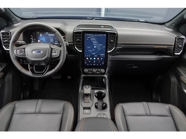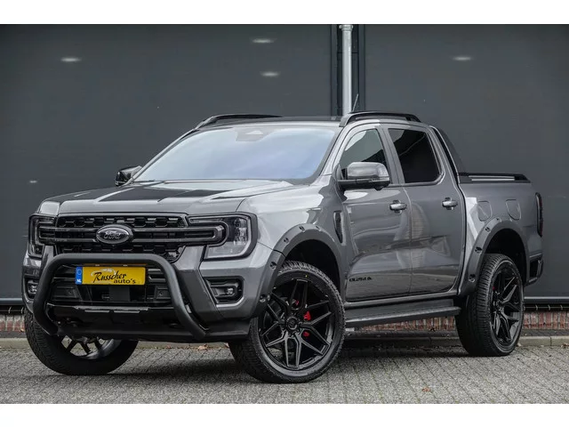 Hybride aandrijflijn (Benzine/Elektrisch) met een elektrisch rijbereik tot 50km WLTP. Wildtrak uitvoering. • Buitenspiegels, grille, voor- en achterbumper in accentkleur. • Raamfolie voorruit, Blauw. • 22'' lichtmetalen velgen, Mat zwart. • Remzadels, Rood. • Dakrailing en railing op laadbak in hoogglans zwart. • Ford logo voor en achter gesmoked. • Treeplanken kunststof, zwart. • Onderrijbeveiliging (Motor). • Wielkastverbreders, zwart. • Stoelbekleding leder met oranje stiksel. • Multifunctioneel lederen stuurwiel (Verwarmbaar) en E-Shifter met oranje stiksel. • Met leder bekleed dashboard met oranje stiksel. • B&O sound systeem. • Wildtrak opschrift op beide voordeuren-en achterklep, zwart. • Metallic lak: Carbonized Grey. Verdere opties. • 12" Infotainment scherm met SYNC IV, navigatie, AM/FM/ DAB radio en 6 speakers. • Combi-instrument Digitaal display 8 Inch. • Apple Carplay of Android auto. • Apps: Google Maps, WhatsApp, Waze, Kaarten, Spotify enz. • Draadloos telefoon...
