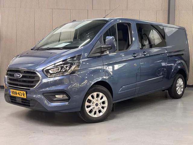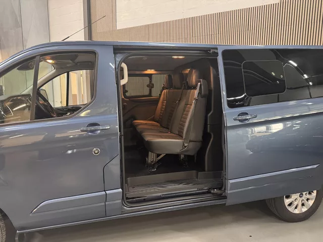 Meest luxe en werkelijk Full-Options Transit CUSTOM Dubbele Cabine 170pk Automaat L2 LIMITED 5-persoons met pas 20.00km en Zijschuifdeuren Links en Rechts incl. Schuifruitjes. Voorzien van Licht grijze volledig Lederen bekleding op Voorstoelen en Achterbank, Elektrisch verstelbare Bestuurdersstoel, In hoogte verstelbare & Verwarmbare Voorstoelen, Bi-Xenon Koplampen met LED Darijverlichting & Grootlicht Assistent, 16" Lichtmetalen velgen, Privacy Glass, Trekhaak icm. Trailer Sway control, Dodehoek detectie (ook voor de aanhanger) & Cross Traffic Alert, Airconditioning, Parkeersensoren voor & achter, Adaptieve Cruise control, Elektrische Voorruitverwarming, Achteruitrijcamera, Pre-Collision Assist, Lane Keeping Aid, Active City stop, Roll Stability Control & Zijwind Assistent, Verkeersbordherkenning, Touchscreen Navigatie icm. Bluetooth & Voice control, Apple Car Play & Android Auto, DAB+ Audio & USB, Elektrisch inklapbare Buitenspiegels, Keyless Starten op afstand, Zichtpakket,...