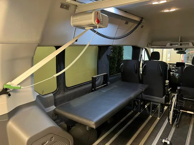 Links achterin de bus zit een opklapbare verschoningstafel met tillift. Momenteel is de bus voorzien van een buitenlift, maar dit kan ook worden omgezet naar een lift in het voertuig. Meer informatie: Carrosserievorm: Rolstoelvervoer; Transmissie: 6 versnellingen, Handgeschakeld; Constructiejaar: 2022-03; Vermogen: 95 kW (129 PK); Motorinhoud: 1.995 cc; Ledig gewicht: 2.535 kg; Interieur: Antraciet, Stof; 4 zitplaatsen; Garantielabel: BOVAG Garantie (12 maanden); BOVAG 40-Puntencheck; BOVAG Afleverbeurt; Motorrijtuigenbelasting: € 230 per kwartaal; Beschikbare afleverpakketten: BASIS afleverpakket (zonder meerprijs); BIERMAN afleverpakket (bussen) (€ 1.500); Referentienummer: #71180