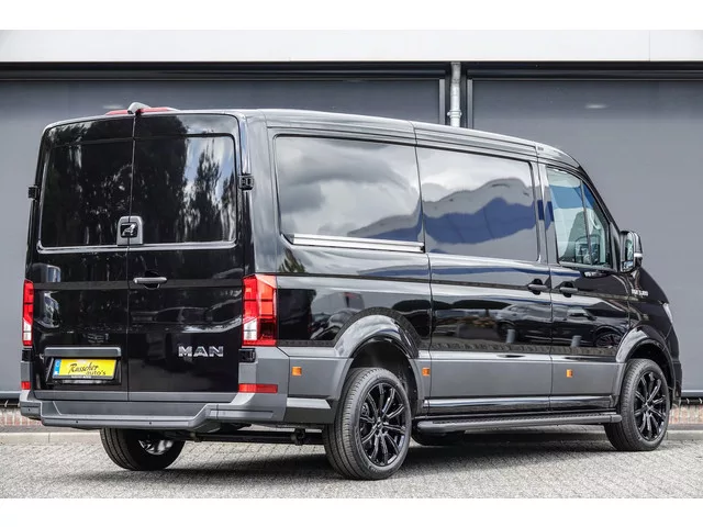 19” Lichtmetalen velgen zijn bij de prijs inbegrepen. De treeplanken hebben een meerprijs van € 795,- Excl. BTW. • Stoel-Bank (3-persoons). • Nieuw model met het vernieuwde dashboard. • 19'' Lichtmetalen velgen MAK. • Voorbumper in carrosseriekleur met zwarte accenten. • Spiegelkappen in carrosseriekleur. • Audio-Navigatiesysteem met 12,9’’ Display. • Volledig digitaal instrumentenpaneel (Virtual Cockpit). • MAN Smartlink: Apple Carplay of Android Auto. • APPS (Google Maps, Flitsmeister, Kaarten, Spotify, Whatsapp enz.). • Radio ontvangst Digitaal (DAB). • Draadloos opladen voor Smartphone (Wireless Charging). • 8-Traps automaat met versnellingspookbediening achter het stuurwiel. • LED koplampverlichting. • Achteruitrijcamera. • PDC, Parkeersensoren voor-en achter. • Dubbele schuifdeur, Links+Rechts. • Cruise control incl. snelheidsbegrenzer. • Mistlampen incl. bochtenverlichting. • Multifunctioneel lederen stuurwiel, verwarmbaar. • Licht- regensensor. • Zijmarkeringslichten...
