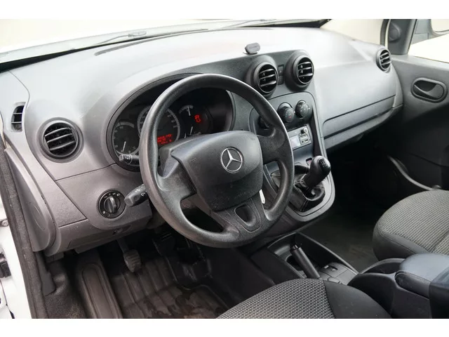 Mercedes-Benz Citan, Origineel Nederlands (NAP), Bijna 4 jaar van de laatste eigenaar geweest, Parkeersensoren achter, Trekhaak, Airco, Originele radio + bluetooth verbinding, Centrale deurvergrendeling met afstandsbediening, Bumpers in kleur, . Carrosserievorm: Bestelauto; 5 versn., Handgeschakeld; Modelreeks: 2012 - 2021; Voorwielaandrijving; 66 kW; 220 Nm; 4 cilinders; 1.461cc; Gewicht: 1.399kg; Laadvermogen: 801kg; GVW: 2.200kg; Max. trekgewicht: 1.050kg; L3H1; LxB: 471x183cm; Wielbasis: 308cm; 60l tank; 0-100 km/h: 14,1s; Topsnelheid: 160km/u; Stof; 2 zitplaatsen; 4,7 l/100km; 5,2 l/100km; 4,5 l/100km; 123 g/km CO₂; Fijnstofuitstoot: 0 mg/km; Euro 6; Wegenbelasting: € 127p/kwrt; Beschikbare afleverpakketten: Basispakket (inbegrepen); Servicepakket 1 (€ 495 meerprijs); Servicepakket 2 (€ 695 meerprijs)