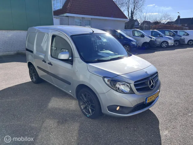 Mercedes Citan bestel 108 CDI EURO 6. Kenteken: VHP-25-H; Merk: Mercedes; Model: Citan; Tellerstand: 100344 KM; Carrosserievorm: Bestel; Aantal deuren: 5; Brandstofsoort: Diesel; Bouwjaar: 2020; Transmissie: Handgeschakeld; Kleur: zilver; Motorinhoud: 1461 cc; Aantal cilinders: 4; Motorcode: K9K U8; Vermogen: 59 kW / 80pk; Ledig gewicht: 1373 kg; Max. trekgewicht: 1050 kg; Aantal zitplaatsen: 2; Verbruik: 4.5 l/100 km; BTW/Marge: BTW aftrekbaar, de prijs is exclusief BTW; Lengte: 432 cm; Breedte: 183 cm; Laadruimte hoogte: 126 cm; Emissieklasse: Euro 6. Comfort. Boordcomputer; Cruise control; Regensensor. Exterieur. Buitenspiegels elektrisch verstelbaar; Buitenspiegels verwarmbaar; Bumpers in carrosseriekleur; Centrale vergrendeling met afstandsbediening; Dimlichten automatisch en regensensor; Getint glas; Lichtmetalen velgen 16"; Metaalkleur; Mistlampen voor; Sportvelgen; Warmtewerend glas; Zijschuifdeur rechts. Infotainment. Radio. Interieur. Airco; Betonplex in laadruimte...