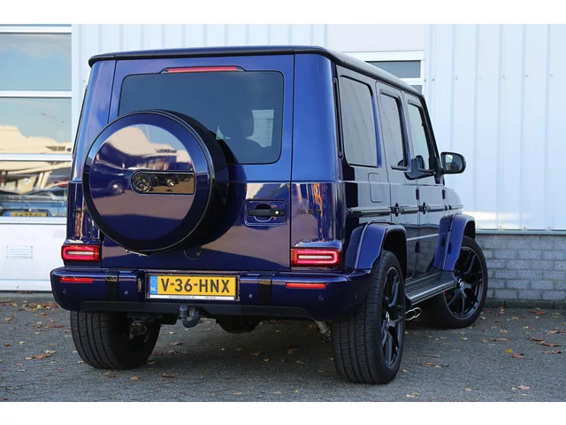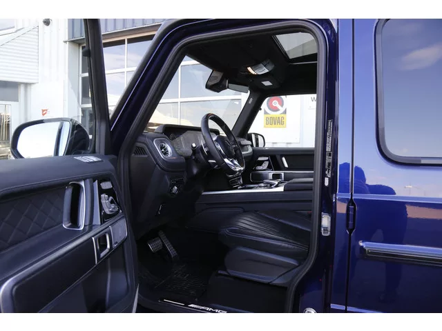 Mercedes-Benz G63 AMG, grijs kenteken in het Mystic Blue en Mercedes-Benz fabrieksgarantie t/m 12-02-2029! - Eerste eigenaar. - Perfect Mercedes-dealer onderhouden bij de volgende kilometerstanden: - 4.913km. - 11.745km. - Deze auto is gecontroleerd op de BOVAG 40-Puntencheck (zie foto 5). - Prijs is exclusief BTW, inclusief BTW: € 241.879,-. - Alle instructieboekjes aanwezig. - Twee sleutels. - Zeer nette staat exterieur. - Zeer nette staat interieur. - Achterbank inclusief toebehoren voor ombouw geel kenteken aanwezig. - U rijdt deze auto al vanaf € 3479,- per maand zonder aanbetaling en/of inruil. Deze Mercedes-Benz G63 AMG is voorzien van onder andere: - Drivers Package. - AMG Ride Control. - Sportuitlaat instelbaar. - Designo Leder Nappa. - Night pakket II. - Massage stoelen. - Adaptieve Cruise-Control (ACC). - Burmester surround sound. - Ionisering. - Treeplanken origineel Mercedes. - Elektrisch bedienbaar glazen schuif/kantel dak. - Volledig digitaal instrumentenpaneel...