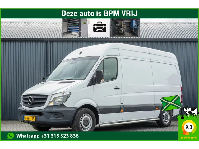NAP: Logisch en een volledige onderhoudshistorie. Bandenprofiel: Voor 5,5 mm en Achter 8 mm. De laadruimte van deze Mercedes Sprinter is volledig uitgerust voor professioneel gebruik. Met een achteruitrijcamera, handige en luxe inrichting van het merk Bott, omvormer en oprijplaat is hij klaar voor elke klus. Voor extra veiligheid beschikt hij over lane assist en een botswaarschuwing systeem, terwijl de sidebars zorgen voor een robuuste uitstraling. Natuurlijk ontbreekt ook de airco niet voor extra comfort tijdens het rijden. Een betrouwbare en complete werkpartner! Carrosserievorm: Bestelbus; 6 versn., Handgeschakeld; Modelreeks: jun. 2016 - jul. 2018; Achterwielaandrijving; 85 kW; 300 Nm; 4 cilinders; 2.143cc; Gewicht: 2.128kg; Laadvermogen: 1.372kg; GVW: 3.500kg; L2H2; LxBxH: 593x199x300cm; Wielbasis: 366cm; 75l tank; Interieur: Zwart, Stof; 3 zitplaatsen; 8,2 l/100km; 10,3 l/100km; 6,9 l/100km; 214 g/km CO₂; Euro 6; Onderhoudsboekjes aanwezig; Aantal eigenaren: 4; 1 sleutel (1...