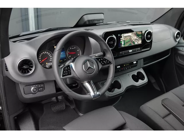 LET OP: De getoonde treeplanken hebben een meerprijs van: € 695,- De 19” Lichtmetalen velgen zijn wel bij de prijs inbegrepen. • Hoog dak (L2H2). • Stoel-Bank, 3-persoons. • 19’’ Lichtmetalen velgen, zwart. • MBUX multimediasysteem 10,25 inch touchscreen. • Navigatie via Apple Carplay of Android Auto. • Apps: Google Maps, Kaarten, WhatsApp, Spotify, enz. • Radio ontvangst digitaal (DAB). • Instrumentenpaneel met kleurenscherm. • Vaste trekhaak. • Cruise Control. • Achteruitrijcamera. • Parkeerpakket (parkeersensoren voor en achter). • Schuifdeur laadruimte, Rechts met dichtrekhulp. • Houten laadruimtevloer. • LED koplampverlichting met LED dagrijverlichting. • LED achterlichten. • Zijmakeringverlichting. • Multifunctioneel lederen stuurwiel met touch bediening en schakelflippers. • Automatische Airconditioning ‘Thermotronic’. • Rijassistentsysteem: Dodehoek assistant. • Rijassistentsysteem: Zijwind assistent. • Rijassistentsysteem: Spoor assistent. • Rijassistentsysteem: Actieve...