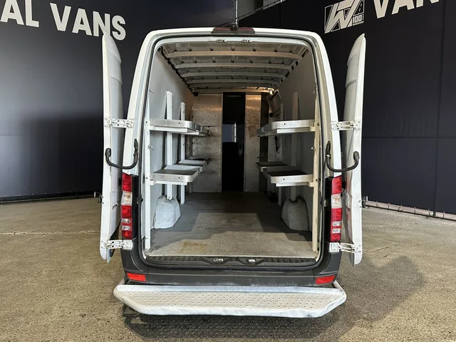 Post NL ingerichte Mercedes-Benz Sprinter L3H2 Automaat Euro6 met camera. Dealer onderhouden en tevens voorzien van sidebars, schappen, post nl doorloop tussenschot en 270gr achterdeuren. Carrosserievorm: Bestelbus; HCNG; 5 versn., Automaat; Modeljaar: 2013; 115 kW; 240 Nm; 4 cilinders; 1.796cc; Gewicht: 2.381kg; Laadvermogen: 1.119kg; GVW: 3.500kg; Max. trekgewicht: 2.000kg; L3H2; LxBxH: 696x199x300cm; Wielbasis: 432cm; 75l tank; Afmetingen laadruimte: 431x178x201cm; Topsnelheid: 159km/u; Interieur: Donker grijs, Stof; 2 zitplaatsen; 11,9 l/100km; 14,4 l/100km; 10,5 l/100km; 213 g/km CO₂; Euro 6; Dealer onderhouden (onderhoudsboekjes aanwezig); Aantal eigenaren: 6; APK: tot dec. 2026; 1 sleutel (1 handzender); Wegenbelasting: € 214p/kwrt; Beschikbare afleverpakketten: Garantiepakket 1 (€ 495 ex BTW); Garantiepakket 2 (€ 795 ex BTW); VZ-743-Z