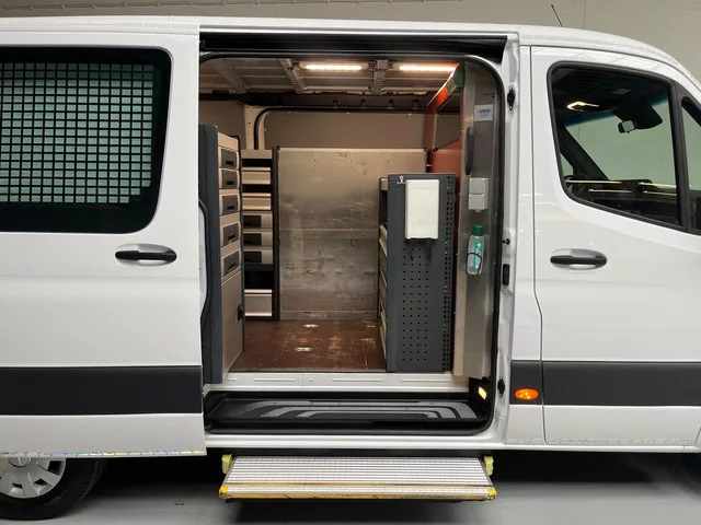 Mercedes-Benz Sprinter SERVICEWAGEN AUTOMAAT 316 2.2 CDI L2H1 EURO VI-D, Airco, M-BUX, 2xSchuifdeur, Trekhaak 3500KG RIJKLAARPRIJS. Te bezichtigen / ons adres : R. Leenders auto's. EKKERSRIJT 1204. 5692 AE Son en Breugel. Tel : 0499399676. Email : info@leendersauto.nl. Internetsite : www.leenders-auto.nl. Openingstijden ; van maandag t/m vrijdag van 08.30 tot 17.00 uur, in de avond en op zaterdag op afspraak! Origineel Nederlandse bus direct van eerste eigenaar de netbeheerder. Voorzien van een nationale auto pas, onderhoudsboekjes, onderhoudshistorie en 2 sleutels! Voor de getoonde prijs leveren wij deze bus met een grote onderhoudsbeurt, nieuwe APK keuring en garantie! L2H1 Compleet uit bedrijf genomen ingerichte servicewagen. Deze bus is gebruikt om op locatie te werken en van vele gemakken voorzien. LAADBAK; - Inrichting is van het merk BOTT en heeft een werkbank, lades en veel opberg mogelijkheden. - Stroom op locatie verschillende v230 stopcontacten en 12v aansluitingen...