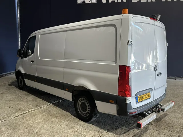 164pk sterke Sprinter L2H1 Automaat Euro6 met handige inrichting en 3500kg trekhaak. Geheel dealer onderhouden met airconditioning, cruisecontrol, parkeersensoren, camera, apple carplay, android auto en bluetooth telefoonvoorbereiding. Carrosserievorm: Bestelbus; 7 versn., Automaat; Modeljaar: 2018; 121 kW; 380 Nm; 4 cilinders; 2.143cc; Gewicht: 2.099kg; Laadvermogen: 1.401kg; GVW: 3.500kg; Max. trekgewicht: 3.500kg; L2H1; LxBxH: 593x202x266cm; Wielbasis: 366cm; 71l tank; Afmetingen laadruimte: 327x183x172cm; Interieur: zwart, Stof; 2 zitplaatsen; 7,7 l/100km; 7,8 l/100km; 7,5 l/100km; 202 g/km CO₂; Euro 6; Dealer onderhouden (onderhoudsboekjes aanwezig); Aantal eigenaren: 2; APK: tot jul. 2026; 2 sleutels (2 handzenders); Wegenbelasting: € 187p/kwrt; Beschikbare afleverpakketten: Garantiepakket 1 (€ 495 ex BTW); Garantiepakket 2 (€ 795 ex BTW); VBB-30-H