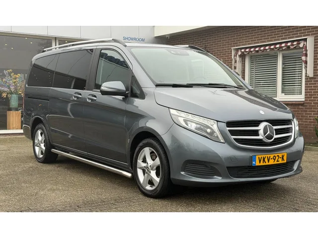 Mercedes-Benz V-klasse 220d Lang DC / LED / DUB SCHUIF / LEER / NIEUWE APK / OH BEURT. Meer informatie: Carrosserievorm: Bestelbus dubbele cabine; Vermogen: 120 kW (163 PK); Aantal cilinders: 4; Motorinhoud: 2.143 cc; Ledig gewicht: 2.303 kg; Laadvermogen: 797 kg; GVW: 3.100 kg; Wielbasis: 320 cm; Acceleratie (0-100): 10,9 s; Topsnelheid: 194 km/u; Interieurkleur: zwart; Gemiddeld brandstofverbruik: 5,9 l/100km (1 op 16,9); Brandstofverbruik in de stad: 6,8 l/100km (1 op 14,7); Brandstofverbruik op de snelweg: 5,4 l/100km (1 op 18,5); CO₂-uitstoot: 154 g/km; Emissieklasse: Euro 6; APK gekeurd tot dec. 2026; Schadevrij; 2 sleutels (2 handzenders); Motorrijtuigenbelasting: € 205 per kwartaal; Optioneel afleverpakket: Bovag Garantie (€ 895); Referentienummer: VKV-92-K