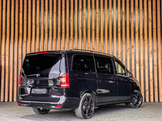 Achterruit apart te openen, Achterspoiler, Achterspoiler, AMG-styling, AMG-styling, Buitenspiegel(s) automatisch dimmend, Buitenspiegels elektrisch inklapbaar, Buitenspiegels elektrisch verstel- en verwarmbaar, Buitenspiegels in carrosseriekleur, Bumpers in carrosseriekleur, Centrale deurvergrendeling met afstandsbediening, Dakrails, Dimlichten automatisch, Dubbele cabine, Electrische schuifdeuren links en rechts, Elektrisch bedienbare achterklep, Elektronische remkrachtverdeling, Exterieur pakket, Getint glas, Grootlichtassistent, Handgrepen in de kleur, Koplampen adaptief, LED achterlichten, LED dagrijverlichting, LED koplampen, Lichtmetalen velgen, Metaalkleur, Panoramadak, Parkeer assistent, Parkeersensor achter, Parkeersensor voor, Schuif-/kanteldak, Schuifdeuren links en rechts, Side-skirts, Side-skirts, Sportonderstel, Sportonderstel, Trekhaak afneembaar, Verlengd, Warmtewerend glas, Zijschuifdeur links, Zijschuifdeur rechts, Zwarte logo's