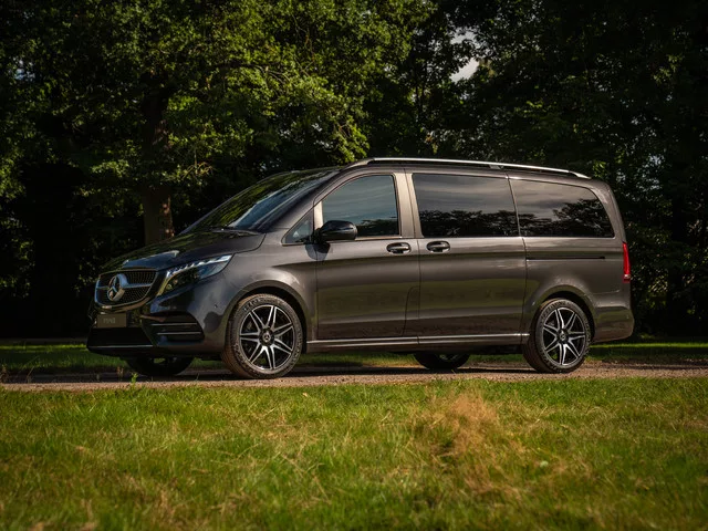 Mercedes-Benz V250d Lang DC Grafietgrijs metallic. Menig Esclusivo van Prins kan worden beschouwd als stijlicoon, als snelheidswonder of als statussymbool. Niets van dat alles in geval van deze schitterende Mercedes-Benz V-Klasse: een V250d Lang DC om precies te zijn. In geval van de super-de-luxe 5-persoons V draait alles om ruimte, comfort en héél veel praktisch nut. Dankzij de Dubbele Cabine configuratie wordt achterin elke centimeter optimaal benut voor het vervoer van grote spullen, terwijl ervoor maximaal 5 inzittenden zeer royaal kunnen bivakkeren. Kortom, de reis kan gaan beginnen! Voor de aandrijving zorgt een heerlijk smeuïge common-rail turbodiesel, die gekoppeld gaat aan een volautomaat met maar liefst 9 versnellingen. Maar er zijn meer redenen om deze Mercedes te beschouwen als de ster onder de DC’s: luchtvering en comfortabele ‘captain chairs’ met armleuningen, luxe lederen bekleding en ingebouwde stoelverwarming maken van deze V250d Lang de ultieme reisauto. Verder...