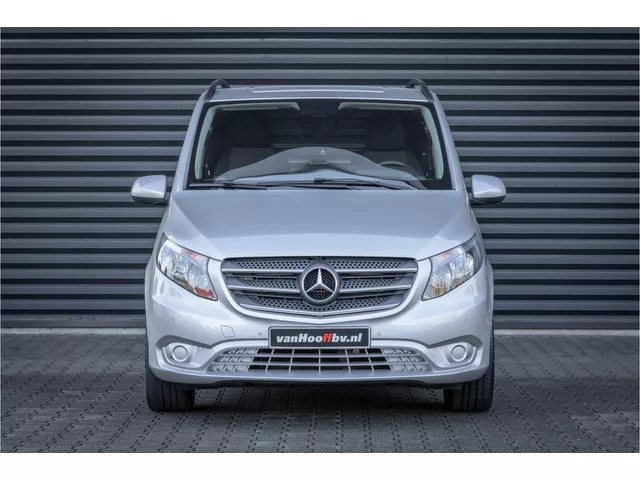 Mercedes-Benz Vito 111 cdi Lang. Briljantzilver metallic - zwart stoffen interieur. Mooie Vito, compleet uitgerust met onder andere: - Multifunctioneel stuurwiel. - Bumpers in carrosseriekleur. - Dakreling. - Navigatiesysteem. - Audio 15. - Parkeersensoren vóór en achter met achteruitrijcamera. - Verwarmde en elektrisch verstelbare buitenspiegels. - Thermotronic automatische airconditioning. - Led lichtstrook in laadruimte. - Comfortdakconsole. - Tempomat cruise controle. - Chauffeursstoel comfort. - Bijrijdersstoel comfort. - Lichtmetalen velgen 19 inch. - Houten vloer. - Houten laadruimte betimmering. - et cetera. Prijs is exclusief 21% BTW. De auto is door ons nieuw geleverd en bij Mercedes-Benz in onderhoud geweest. www.vanhooffbv.nl. Carrosserievorm: Bestelauto; 6 versn., Handgeschakeld; Modeljaar: 2016; 4WD; 85 kW; 270 Nm; 4 cilinders; 1.598cc; Gewicht: 1.853kg; Laadvermogen: 947kg; GVW: 2.800kg; L2H1; LxBxH: 514x193x198cm; Wielbasis: 320cm; 72l tank; 0-100 km/h: 14,4s;...