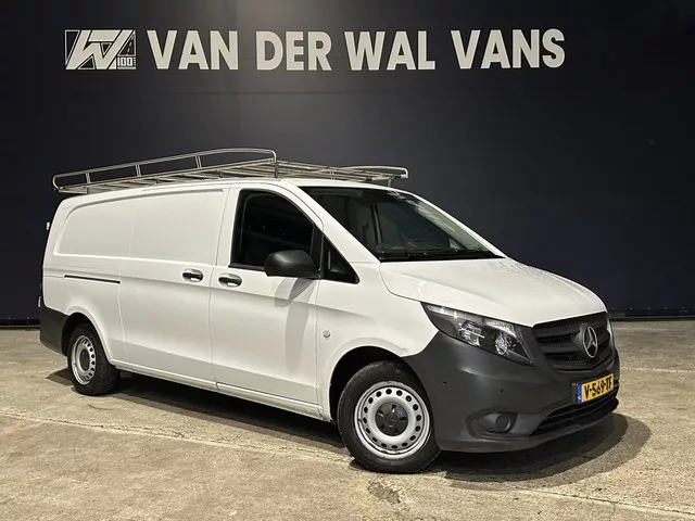 Dealer onderhouden Mercedes-Benz Vito L3H1 XL met imperiaal en camera. Deze Vito is tevens voorzien van een trekhaak, cruisecontrol, parkeersensoren en bluetooth telefoonvoorbereiding. Carrosserievorm: Bestelauto; 6 versn., Handgeschakeld; Modeljaar: 2016; 85 kW; 270 Nm; 4 cilinders; 1.598cc; Gewicht: 1.905kg; Laadvermogen: 895kg; GVW: 2.800kg; Max. trekgewicht: 2.000kg; L3H1; LxBxH: 537x193x199cm; Wielbasis: 343cm; 72l tank; Afmetingen laadruimte: 306x168x139cm; 0-100 km/h: 14,4s; Topsnelheid: 169km/u; Interieur: Donker grijs, Stof; 2 zitplaatsen; 6,5 l/100km; 8 l/100km; 5,6 l/100km; 169 g/km CO₂; Euro 6; Dealer onderhouden (onderhoudsboekjes aanwezig); Aantal eigenaren: 4; 1 sleutel (1 handzender); Wegenbelasting: € 169p/kwrt; Beschikbare afleverpakketten: Garantiepakket 1 (€ 495 ex BTW); Garantiepakket 2 (€ 795 ex BTW); V-569-TF