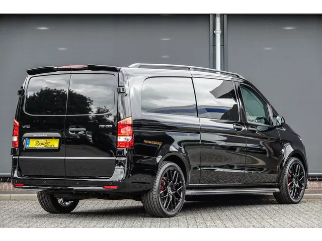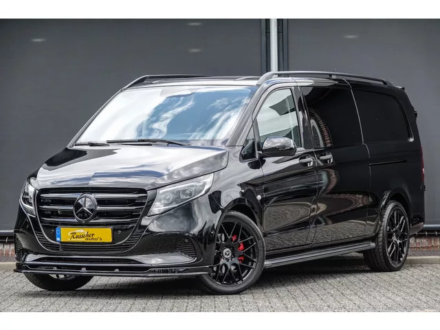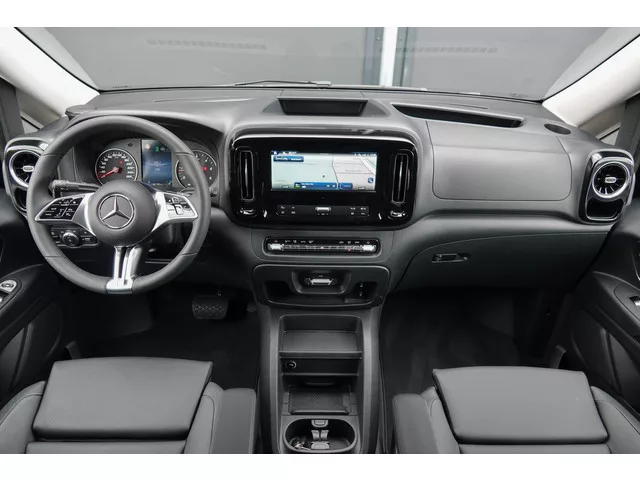 • PRO-uitvoering. • Lengte 3, Extra Lang. • Dubbele cabine (5-persoons). • 20’’ lichtmetalen velgen, hoogglans zwart. • Treeplanken, zwart. • Dakrailing, Zwart. • Achterspoiler in carosseriekleur. • Frontspoiler, Zwart. • Remzadels, Rood. • Grille in hoogglans zwart. • Exterieurkleur: Obsidian Black. • Voor, achterbumper-en spiegelkappen in carosseriekleur. • Afneembare trekhaak. • MBUX Navigatie/Multimediasysteem met 10,25’’ touchscreen. • Achteruitrijcamera. • Parkeersensoren voor-en achter. • Dubbele schuifdeur, Links+Rechts met beglazing. • Achterdeuren, 180° te openen. • Apple Carplay of Android Auto. • Apps: Google Maps, Waze, WhatsApp, Kaarten, enz. • Digital Radio (DAB). • Adaptive Cruise Control. • Multibeam LED-koplampen met Grootlichtassistent Plus. • Interieurpakket Chrome (Chroom accenten en elementen in zwart hoogglanzend). • Stoelbekleding: leder. • Stoelverwarming voor bestuurders-en bijrijdersstoel. • Armsteun voor bestuurders-en bijrijdersstoel. • Bestuurdersstoel...