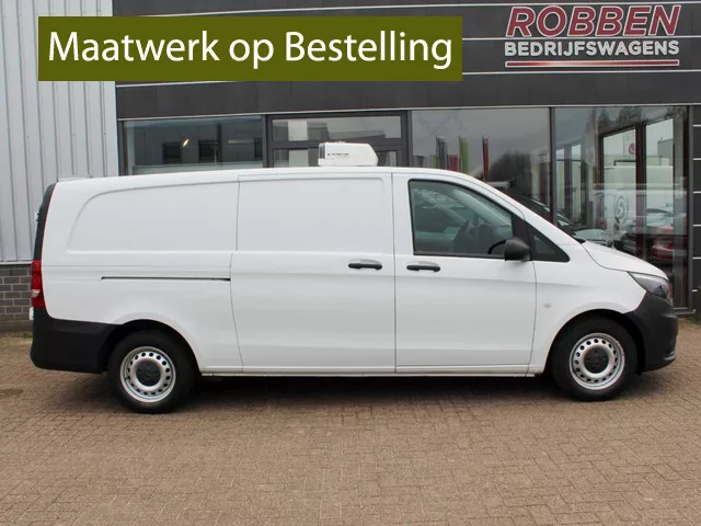 OP BESTELLING: Mercedes-Benz Vito 116 CDI Extra Lange Koelwagen Vrieswagen * Nieuwe koelinstallatie, merk naar wens (voorbeeld is Thermoking) * Nieuwe isolatiekit in Laadruimte * Euro 6 * 2 zitplaatsen * 6 versnellingen * Achteruitrijcamera * Parkeersensoren voor en achter * Navigatie * Airco met Climate control * Cruise control * Elektrische ramen & spiegels (verwarmbaar) * Centrale vergrendeling met afstandbediening * Bluetooth DAB radio * Multimediasysteem met USB aansluiting * Android auto/Apple carplay * Spraakbediening * Bluetooth telefoonverbinding * Schuifdeur rechts * Trekhaak * Stuurwiel multifunctioneel * Audiobediening op stuur * Attention assist * Dimlichten automatisch * enz. Maten laadruimte (LxBxH):300 x 164 x 134 cm. Prijs: v.a. € 39.950,- excl. btw * (Afleverpakket + 3mnd garantie: € 895,- excl. btw). Deze extra lange Mercedes Vito koel- vrieswagen leasen kan natuurlijk ook! Een Financial of Operational Lease is mogelijk! Inruil Mercedes/Volkswagen/Iveco...