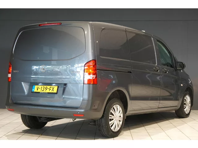 De Mercedes Benz Vito 111 CDI, afkomstig van de eerste eigenaar en tot en met 2022 zelfs onderhouden bij de Mercedes-Benz dealer. De bus is voorzien van luxe als: Airco | Parkeersensoren voor + achter | Bluetooth audio | Metallic lak | Elektrisch verstel-en inklapbare buitenspiegels | Multifunctioneel stuurwiel | 6-bak | Betonplex laadvloer | Zijwand betimmering | Elektrische ramen | Automatische verlichting | Schuifdeur | Etc. Carrosserievorm: Bestelauto; 6 versn., Handgeschakeld; Modeljaar: 2014; 84 kW; 270 Nm; 4 cilinders; 1.598cc; Gewicht: 1.753kg; Laadvermogen: 748kg; GVW: 2.501kg; Max. trekgewicht: 2.000kg; L1H1; LxB: 490x193cm; Wielbasis: 320cm; 5.500 laadruimtel; 0-100 km/h: 14,4s; Topsnelheid: 169km/u; Stof; 2 zitplaatsen; 6,3 l/100km; 7,8 l/100km; 5,4 l/100km; 164 g/km CO₂; Fijnstofuitstoot: 2 mg/km; Euro 6; Wegenbelasting: € 165p/kwrt; Beschikbare afleverpakketten: Basispakket (zonder meerprijs); Servicepakket 1 (€ 495); Servicepakket 2 (€ 695); V-139-FX