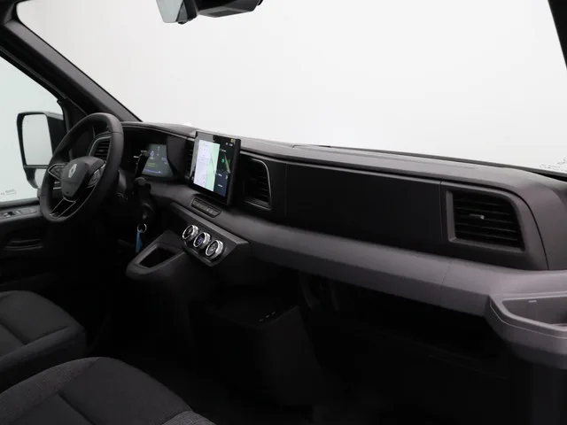 12V-aansluiting in de laadruimte, Bekleding stof, Chromen afwerking rond de ventilatieroosters, Dashboardafwerking in zwart met horizontale grijze baan, Dashboardlade, In hoogte verstelbare bestuurdersstoel met lendensteun en armsteun, LED interieurverlichting met 2 afzonderlijke lampjes, LED verlichting in de laadruimte, Meerdere afgesloten opbergruimtes in bovenzijde dashboard, Multifunctionele passagiersbank met 2 zitplaatsen, wegklapbare rugleuning met papierhouder en opbergruimte onder de zitting, Sjorogen in laadruimte (12 in L2, 14 in L3), Stoffen stoelbekleding in gemêleerd grijs met blauwe stiksels, donkergrijze baan op de buitenzijde van de stoelen en versterkte kunstlederen wangen voor de bestuurdersstoel, Volledig gesloten tussenschot met geluidsisolatie, Zijschuifdeur rechts zonder raam
