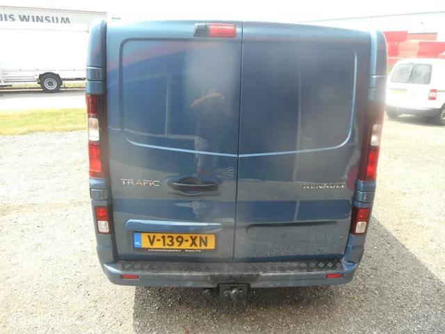Renault Trafic bestel 1.6 dCi T29 L2H1 DC/CLIMATECONTROL/CRUISECONTROL/NAVIGATIE. Kenteken: V-139-XN; Merk: Renault; Model: Trafic bestel; APK tot: 19-09-2026; Tellerstand: 201830 KM; Carrosserievorm: Bestel; Aantal deuren: 5; Brandstofsoort: Diesel; Bouwjaar: 2019; Transmissie: Handgeschakeld 6 BAK; Kleur: blauw Metallic; Motorinhoud: 1598 cc; Aantal cilinders: 4; Motorcode: R9M H4; Vermogen: 89 kW / 121pk; Ledig gewicht: 1825 kg; Max. trekgewicht: 2000 kg; Aantal zitplaatsen: 5; Verbruik: 6.7 l/100 km; BTW/Marge: BTW aftrekbaar, de prijs is exclusief BTW; Lengte: 540 cm; Breedte: 196 cm; Laadruimte hoogte: 139 cm; Aantal sleutels: 2; Motorrijtuigenbelasting: € 166 per kwartaal; Emissieklasse: Euro 6. Comfort. Boordcomputer; Cruise control. Exterieur. Buitenspiegels elektrisch verstel- en verwarmbaar; Buitenspiegels in carrosseriekleur; Bumpers in carrosseriekleur; Centrale vergrendeling met afstandsbediening; Lichtmetalen velgen 17"; Metaalkleur; Park Distance Control...