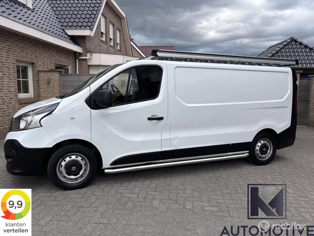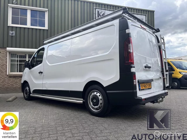 Renault Trafic 1.6 dCi L2 EURO6|Airco|Navi|Trekhaak|NAP|Financiering mogelijk|Imperiaal|Trap|APK 12-2026. Renault Trafic 1.6dCi L2 EURO6|Airco|Navi|EXPORTPRICE. Kenteken: V-467-JK; Merk: Renault; Model: Trafic bestel; APK tot: 06-12-2026; Tellerstand: 180794 KM; Carrosserievorm: Bestel; Aantal deuren: 5; Brandstofsoort: Diesel; Bouwjaar: 2017; Transmissie: Handgeschakeld; Kleur: wit; Motorinhoud: 1598 cc; Aantal cilinders: 4; Motorcode: R9M H4; Vermogen: 70 kW / 95pk; Ledig gewicht: 1725 kg; Max. trekgewicht: 2000 kg; Aantal zitplaatsen: 3; Verbruik: 6.7 l/100 km; BTW/Marge: BTW aftrekbaar, de prijs is exclusief BTW; Lengte: 540 cm; Breedte: 196 cm; Laadruimte hoogte: 139 cm; Aantal sleutels: 1; Onderhoudshistorie aanwezig: Ja; Motorrijtuigenbelasting: € 157 per kwartaal; Emissieklasse: Euro 6. Pakket: Audio pakket. Bluetooth; DAB; Multimedia-voorbereiding; Radio; Radio CD speler. Comfort. Boordcomputer; Cruise control. Exterieur. Buitenspiegel rechts; Buitenspiegels elektrisch...