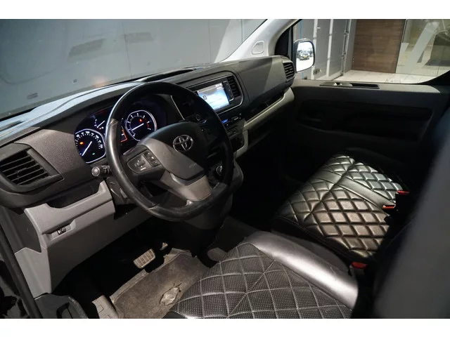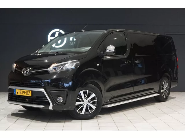 Toyota PROACe, Origineel Nederlands, 177PK Automaat, Luxe lederen bekleding, Stoelverwarming, Navigatie, Lichtmetalen velgen, Spiegels elektrisch inklapbaar, Trekhaak, 2 schuifdeuren, Deuren achter, Cruise control, Climate control, . Carrosserievorm: Bestelbus; 6 versn., Automaat; Modeljaar: 2016; Voorwielaandrijving; 130 kW; 400 Nm; 4 cilinders; 1.997cc; Gewicht: 1.677kg; Laadvermogen: 1.323kg; GVW: 3.000kg; L3H1; LxB: 531x192cm; Wielbasis: 328cm; 69l tank; 6.100 laadruimtel; 0-100 km/h: 10,0s; Topsnelheid: 170km/u; 3 zitplaatsen; 5,9 l/100km; 6,3 l/100km; 5,5 l/100km; 155 g/km CO₂; Fijnstofuitstoot: 0 mg/km; Euro 6; Wegenbelasting: € 156p/kwrt; vanaf € 406 p/m (informeer naar de mogelijkheden en voorwaarden); Beschikbare afleverpakketten: Servicepakket 1 (€ 495); Servicepakket 2 (€ 695); V-839-RZ