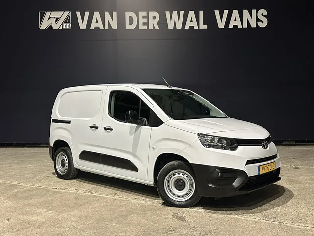 Zeer betrouwbare Toyota Proace City L1H1 Euro6 met airconditioning en slechts 51.000km. Geheel dealer onderhouden en tevens voorzien van navigatie, Apple Carplay, Android Auto, cruisecontrol, zijdeur, parkeersensoren en bluetooth telefoonvoorbereiding. Carrosserievorm: Bestelbus; 5 versn., Handgeschakeld; Modeljaar: 2021; 4WD; 75 kW; 250 Nm; 4 cilinders; 1.499cc; Gewicht: 1.346kg; Laadvermogen: 674kg; GVW: 2.020kg; Max. trekgewicht: 1.350kg; L1H1; LxBxH: 440x185x188cm; Wielbasis: 279cm; 60l tank; 0-100 km/h: 11,7s; Topsnelheid: 164km/u; Interieur: Licht grijs, Stof; 2 zitplaatsen; 5,3 l/100km; 143 g/km CO₂; Euro 6; Dealer onderhouden (onderhoudsboekjes aanwezig); Aantal eigenaren: 2; APK: tot mrt. 2027; 2 sleutels (2 handzenders); Wegenbelasting: € 121p/kwrt; vanaf € 342 p/m (informeer naar de mogelijkheden en voorwaarden); Beschikbare afleverpakketten: Garantiepakket 1 (€ 695 ex BTW); Garantiepakket 2 (€ 795 ex BTW); VVT-70-G