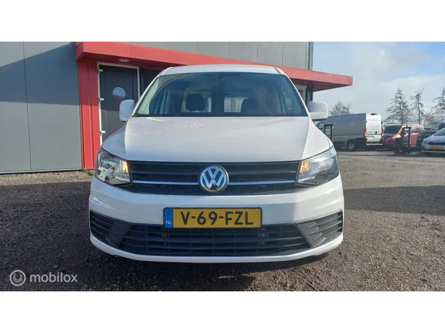 Volkswagen Caddy Bestel 1.4 TSI L2H1 BMT Maxi/MARGE/STANDKACHEL. Kenteken: V-69-FZL; Merk: Volkswagen; Model: Caddy Bestel; APK tot: 27-06-2026; Tellerstand: 52960 KM; Carrosserievorm: Bestel; Aantal deuren: 5; Brandstofsoort: Benzine; Bouwjaar: 2018; Transmissie: Automaat; Kleur: wit; Motorinhoud: 1395 cc; Aantal cilinders: 4; Motorcode: CZC; Vermogen: 92 kW / 125pk; Ledig gewicht: 1490 kg; Max. trekgewicht: 1500 kg; Aantal zitplaatsen: 2; Verbruik: 5.9 l/100 km; BTW/Marge: Marge, de BTW is niet aftrekbaar; Lengte: 488 cm; Breedte: 179 cm; Laadruimte hoogte: 126 cm; Aantal sleutels: 2; Onderhoudshistorie aanwezig: Ja; Emissieklasse: Euro 6. Comfort. Boordcomputer; Cruise control. Exterieur. Achterdeuren met ruiten; Achterruitverwarming; Achterruitwisser; Buitenspiegels elektrisch verstel- en verwarmbaar; Bumpers in carrosseriekleur; Centrale vergrendeling met afstandsbediening; Lichtmetalen velgen 17"; Mistlampen voor; Parkeersensor achter; Trekhaak; Verwarmde voorruit...
