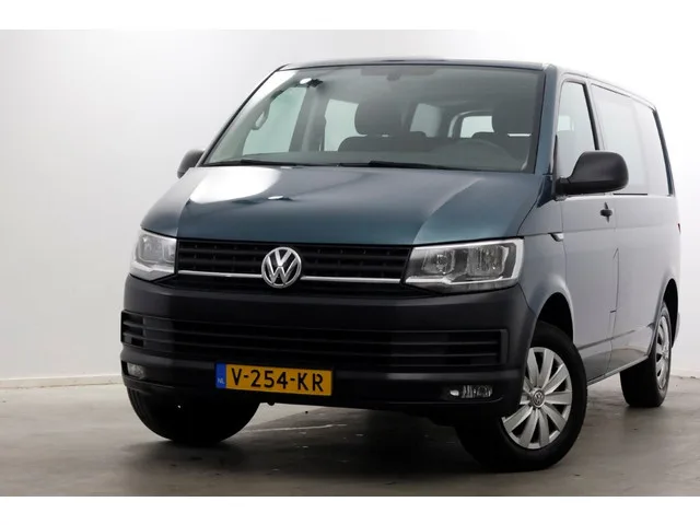 Keurige Transporter T6 2.0 TDI in de zeldzame kleur Bamboo Green metallic. Leuke Comfortline uitvoering voorzien van o.a.: 5-Persoons dubbel cabine. Airconditioning. Cruise Control. Mistlampen. Achterklep. Inruil en Financial Lease mogelijk! Carrosserievorm: Bestelbus; 6 versn., Handgeschakeld; Modeljaar: 2015; 4WD; 110 kW; 340 Nm; 4 cilinders; 1.968cc; Gewicht: 1.819kg; Laadvermogen: 981kg; GVW: 2.800kg; Max. trekgewicht: 2.500kg; L1H1; LxBxH: 490x190x199cm; Wielbasis: 300cm; 70l tank; 0-100 km/h: 11,1s; Topsnelheid: 182km/u; 3 zitplaatsen; 6,1 l/100km; 7,3 l/100km; 5,4 l/100km; 159 g/km CO₂; Euro 6; Dealer onderhouden (onderhoudsboekjes aanwezig); Aantal eigenaren: 2; 2 sleutels; Wegenbelasting: € 165p/kwrt; Beschikbare afleverpakketten: Zo meenemen (zonder meerprijs); Budget (€ 395 ex BTW); 3 maanden garantie - Landelijke dekking € 995,- (€ 995 ex BTW); V-254-KR