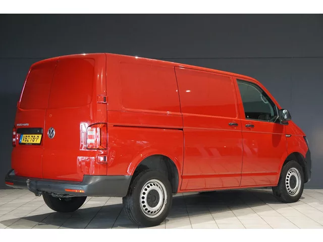 Volkswagen Transporter, Origineel Nederlands (NAP), Trekhaak (2200kg), Parkeersensoren achter, Bluetooth audio + telefoon koppeling, Hout afwerking in de laadruimte, Schuifdeur rechts, Cruise control, Airco, . Carrosserievorm: Bestelauto; 5 versn., Handgeschakeld; Modelreeks: 2015 - 2020; Modelcode: T6; Voorwielaandrijving; 75 kW; 250 Nm; 4 cilinders; 1.968cc; Gewicht: 1.805kg; Laadvermogen: 795kg; GVW: 2.600kg; L1H1; LxB: 490x190cm; Wielbasis: 300cm; 70l tank; 5.800 laadruimtel; 0-100 km/h: 15,3s; Topsnelheid: 157km/u; Interieur: Titaniumzwart (jg), Stof; 3 zitplaatsen; 7,1 l/100km; 9,1 l/100km; 5,9 l/100km; 187 g/km CO₂; Euro 6d-TEMP; Wegenbelasting: € 161p/kwrt; Beschikbare afleverpakketten: Basispakket (inbegrepen); Servicepakket 1 (€ 495 meerprijs); Servicepakket 2 (€ 695 meerprijs); Basiskleur: rood / rood