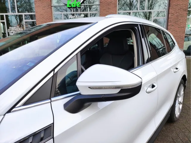 ŠKODA Enyaq iV 80 – Zeer Compleet | Wegklapbare Trekhaak | Leder | ACC | Verwarmd Stuur/Stoelen/Voorruit | Assistentie-, Comfort-, Climate- & Lederpakket | 20” Vega. Bijzonder mooie en rijk uitgeruste ŠKODA Enyaq iV 80 origineel Nederlands geleverd. Uitgevoerd in de luxe kleur Moon White Metallic en voorzien van vrijwel alle gewenste opties. Perfect onderhouden en met slechts 38.946 km (05-2021). Belangrijkste opties & uitrusting. ✔ Elektrisch uitklapbare trekhaak. ✔ Lederen bekleding + lederen interieuraccenten. ✔ 20 inch Vega lichtmetalen velgen (235/50 R20 vóór, 255/45 R20 achter). ✔ Stoel-, stuur- én voorruitverwarming. ✔ Adaptieve Cruise Control met Stop&Go. ✔ Dodehoekdetectie & Rijstrookassistent met correctie. ✔ Apple CarPlay / Android Auto. ✔ Navigatiesysteem full map. ✔ LED-koplampen. ✔ Verwarmde achterbank. ✔ Zonneschermen op de zijruiten achter. Pakketten. ▪ Assistentie Pakket. Actieve noodgevalassistent, bots-herkenning & -activatie, adaptieve cruise control met Stop&Go,...