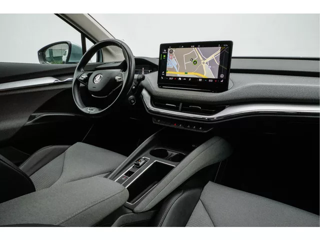 Intelligente technologie. Geen emissies en een fantastisch rijgedrag. Welkom in de ŠKODA Enyaq iV. Geruisloos genieten tegen lage kosten? Dan is deze elektromotor iets voor u! De krachtige motor geeft deze ŠKODA uitstekende prestaties. Bij de rijke uitrusting horen ook 19 inch lichtmetalen velgen, LED koplampen, in hoogte verstelbare passagiersstoel, in delen neerklapbare achterbank, LED-achterlichten en verstelbare lendensteunen. Snelheid, omgevingsinfo, navigatie en communicatie... Het digitale dashboard geeft alles realtime weer. De speciale app verbindt met Connected Services, die de status van vitale functies bijhoudt en waarschuwt als u bijvoorbeeld moet tanken, de bandenspanning moet controleren of olie moet bijvullen. De bediening van het audiosysteem en het full map navigatiesysteem gebeurt met knoppen op het stuur en als u wilt zelfs met uw stem. De audio is overigens voorzien van DAB-radio voor een altijd heldere ontvangst. Bij de luxe van deze auto hoort ook electronic...