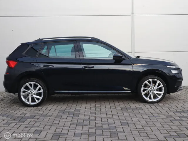 Skoda Kamiq 1.0 TSI Sportline CarPlay Automaat Stoelverwarming. Kenteken: H-375-PX; Merk: Skoda; Model: Kamiq; APK tot: 02-04-2028; Tellerstand: 162144 KM; Carrosserievorm: SUV; Aantal deuren: 5; Brandstofsoort: Benzine; Bouwjaar: 2020; Transmissie: Automaat; Kleur: zwart; Bekleding: Stof; Kleur interieur: zwart; Motorinhoud: 999 cc; Aantal cilinders: 3; Motorcode: DKR; Vermogen: 85 kW / 116pk; Ledig gewicht: 1151 kg; Max. trekgewicht: 1200 kg; Aantal zitplaatsen: 5; Verbruik: 6.1 l/100 km; BTW/Marge: Marge, de BTW is niet aftrekbaar; Lengte: 424 cm; Breedte: 179 cm; Aantal sleutels: 2; Onderhoudshistorie aanwezig: Ja; Motorrijtuigenbelasting: € 172 - 188 per kwartaal; Emissieklasse: Euro 6. Comfort. Boordcomputer. Exterieur. Achterruitwisser; Buitensp.elektr.inklap en aut. dimmend; Buitenspiegels in carrosseriekleur; Centrale vergrendeling met afstandsbediening; Dakrails; Dimlichten automatisch; Extra getint glas achter; LED achterlichten; LED dagrijverlichting; LED koplampen...