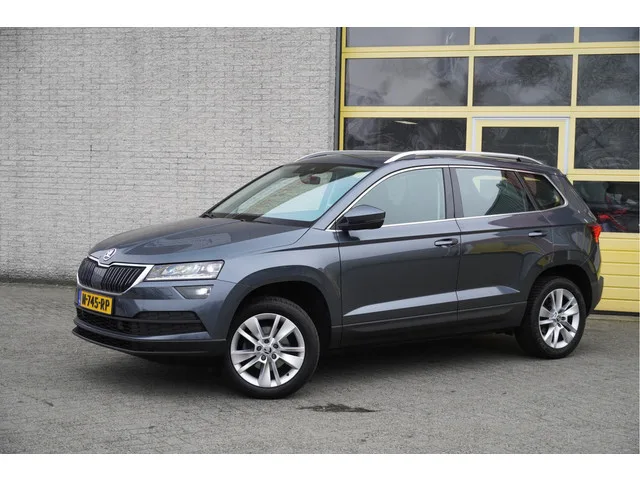ŠKODA Karoq Automaat met de zeer luxe aanwezige opties als Lichtmetalen velgen | Led dagrijverlichting | Led koplampen | Led achterlichten | Led mistlampen | Parkeersensoren | Keyless entry | Verwarmd voorruit | Achteruitrijcamera | App-Connect | Navigatiesysteem | Climate control | Cruise control | Verwarmde voorstoelen | Getint glas. 7 versn., Automaat; Modeljaar: 2020; 4WD; 110 kW; 250 Nm; 4 cilinders; 1.498cc; Gewicht: 1.310kg; Laadvermogen: 620kg; GVW: 1.930kg; Max. trekgewicht: 1.500kg; LxBxH: 450x184x162cm; Wielbasis: 264cm; 50l tank; 0-100 km/h: 9,0s; Topsnelheid: 203km/u; Interieur: zwart, Stof; 5 zitplaatsen; 5,3 l/100km; 6,5 l/100km; 4,6 l/100km; 144 g/km CO₂; Energielabel B; Euro 6; Dealer onderhouden (onderhoudsboekjes aanwezig); Aantal eigenaren: 3; APK bij aflevering; Wegenbelasting: € 199-€ 217p/kwrt; N-745-RP